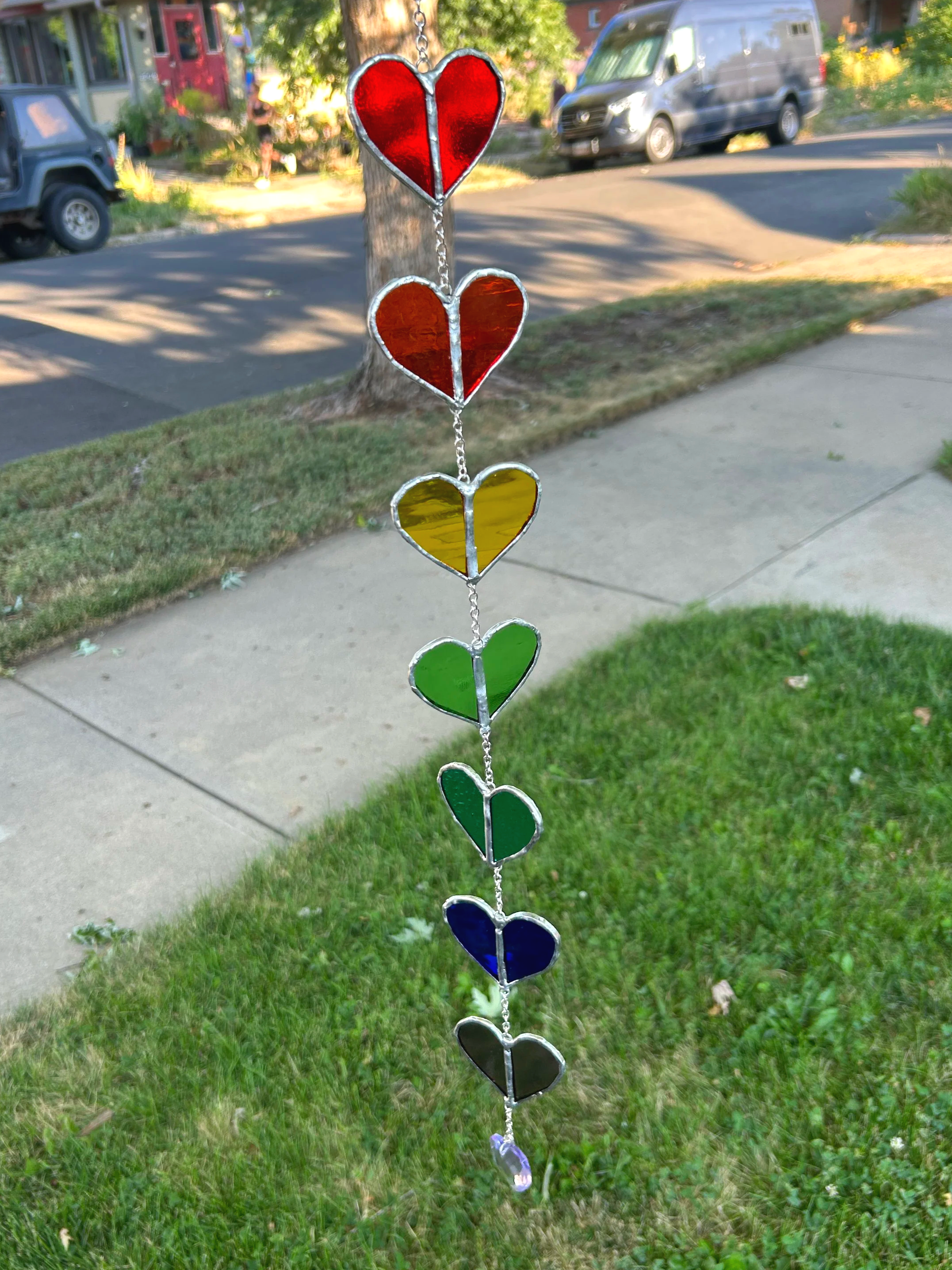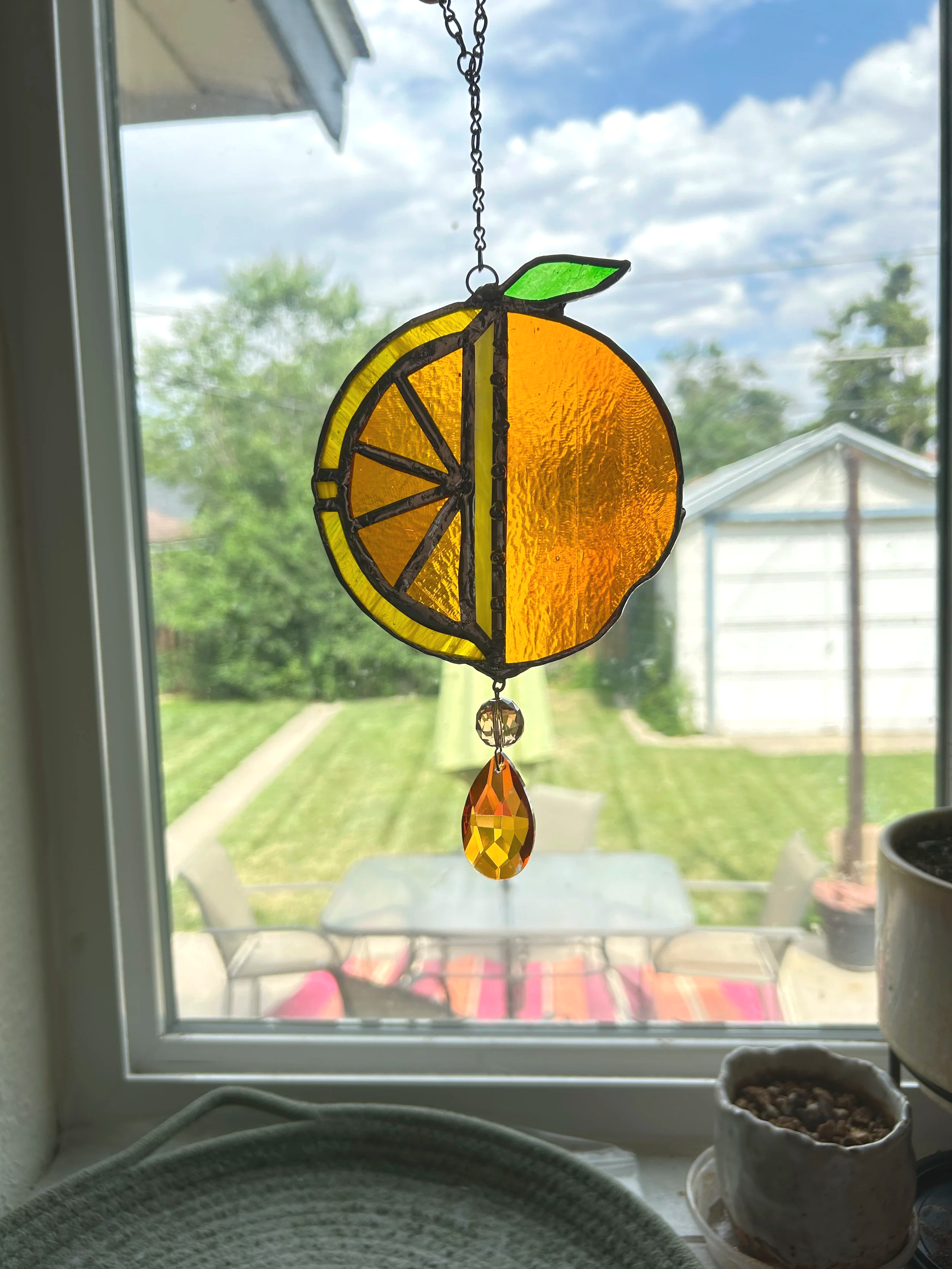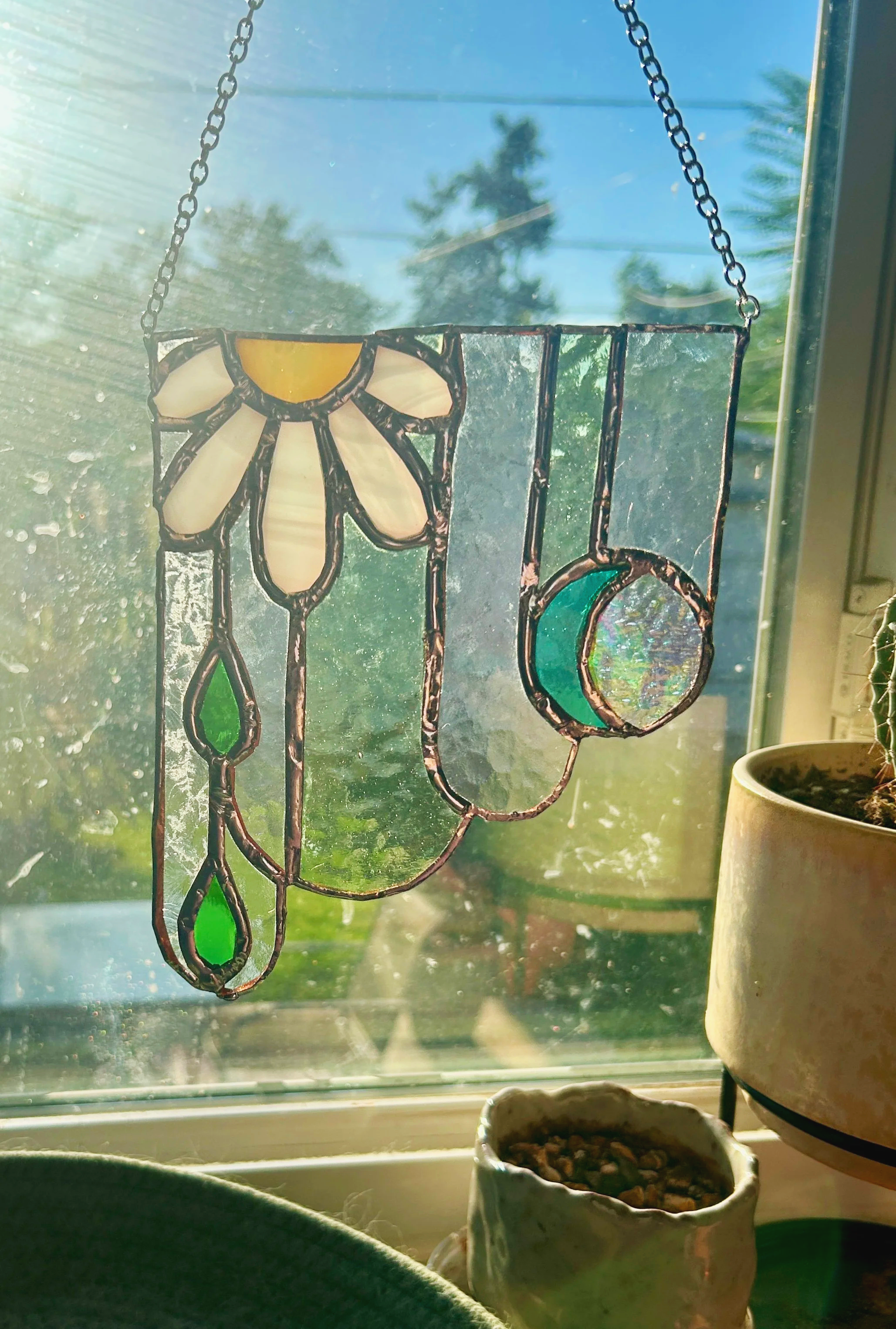 I am a theatrical props supervisor by day and a stained glass artisan by night! My work is inspired by the whimsy of life and aims to be a fun bit of art in someone’s space. I mostly make sun catchers to live in a sunny window for those looking for some window gems in their homes!